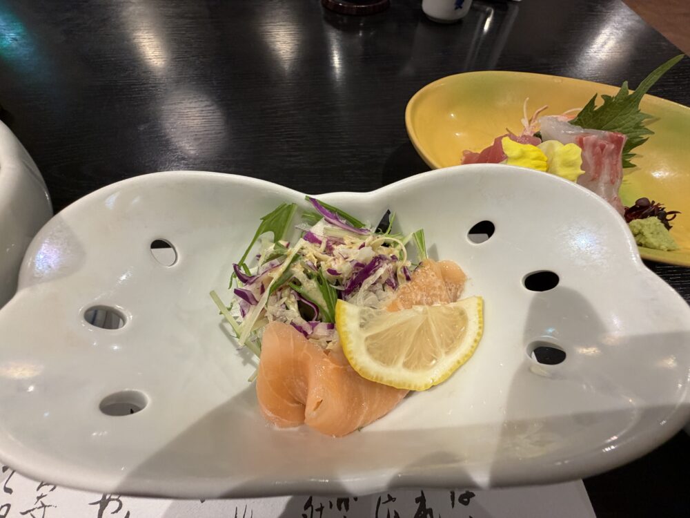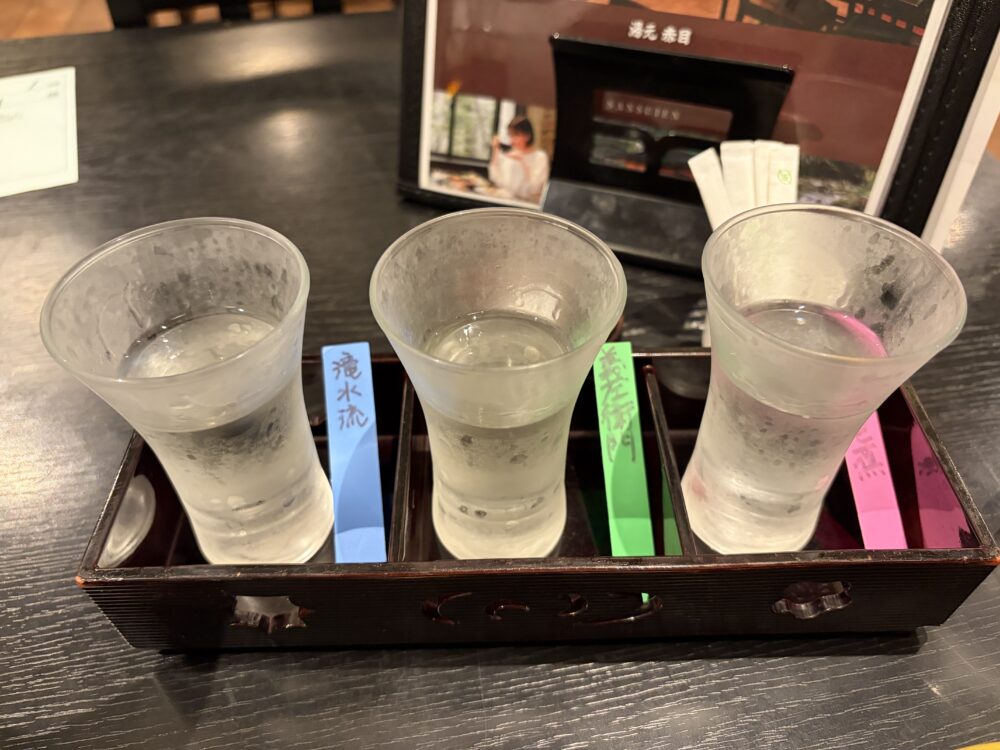 先ほど言った飲み比べの日本酒を。多分だけど、すごくスッキリとした日本酒と思う…。(そこまで日本酒をたくさん飲んだことない笑)