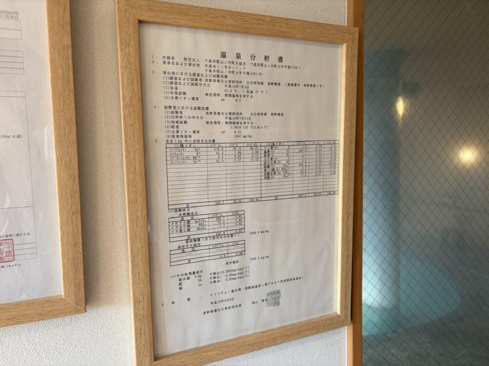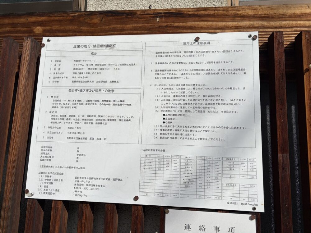 いちおう、これは目の前の共同浴場「大湯」の成分表。