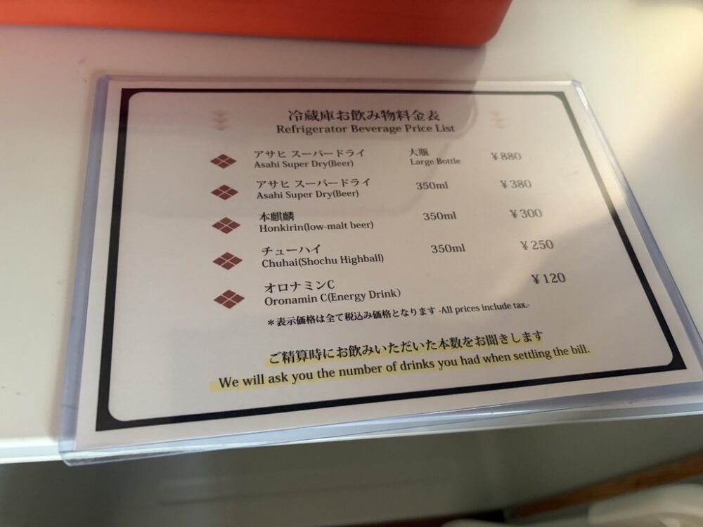 たしか持ち込みがOKだったと思うので、「日本酒飲みたい…」みたいな方はチェックインのときにお聞きしてみるのが良いかと思います。
