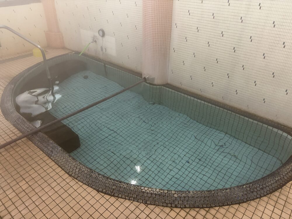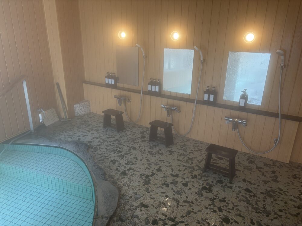 温泉はやや熱めで、クセはないけど「とろみ」もあって、湯の花も少しあって、「成分が濃い」という感じ。