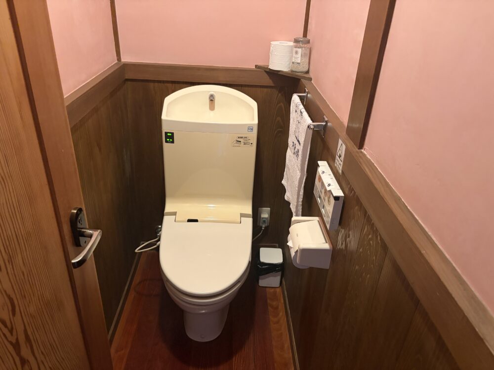 お手洗いも清潔感バツグンで、お部屋に完備。普通、湯治宿だと部屋にはないので、ありがたいかぎり。