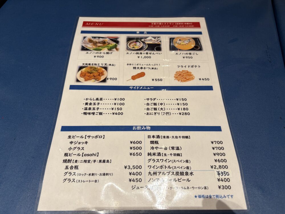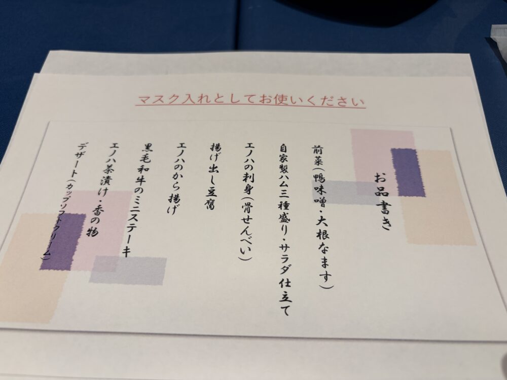 お品書き。「エノハ」という魚は、関東でいうところの「ヤマメ」ですね。