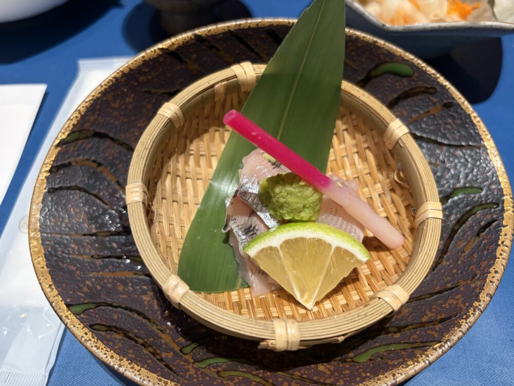 そしてエノハ(ヤマメ)のお刺身。地元のカボスもついて、ちょっと最高すぎる…。