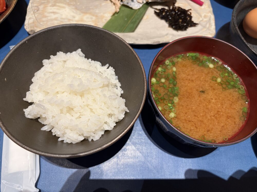 ご飯とお味噌汁も抜群で。ご飯はセルフでおかわりができるようになっていました。