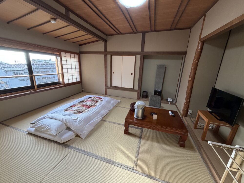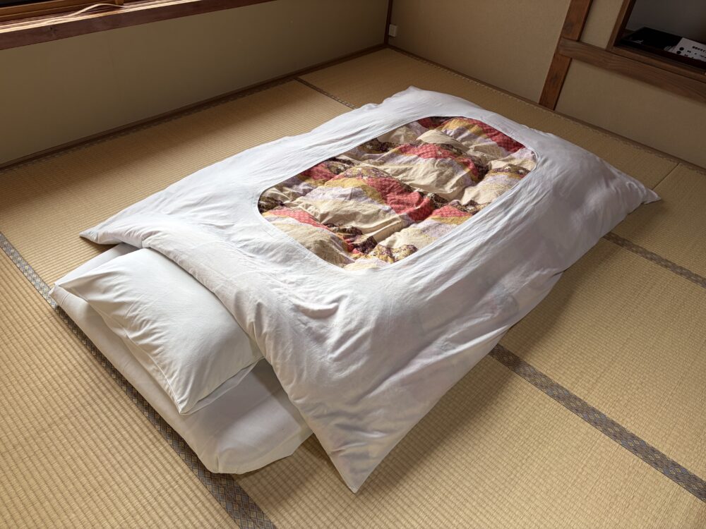 それで「蔵王温泉あるある」でもあるのだけど、わりと布団が薄めなことが多い。