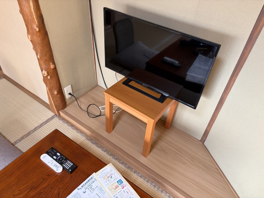 テレビも。えびや旅館さんくらい酸性泉の源泉が近いと、温泉の成分で1年くらいで壊れてしまうとのこと。(パソコンとか電化製品すべて)