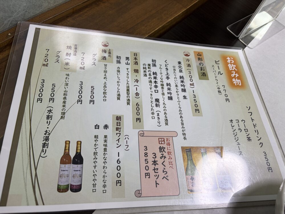 ドリンクメニュー。やっぱりビールが合うかな。中瓶が770円はかなりお安い。