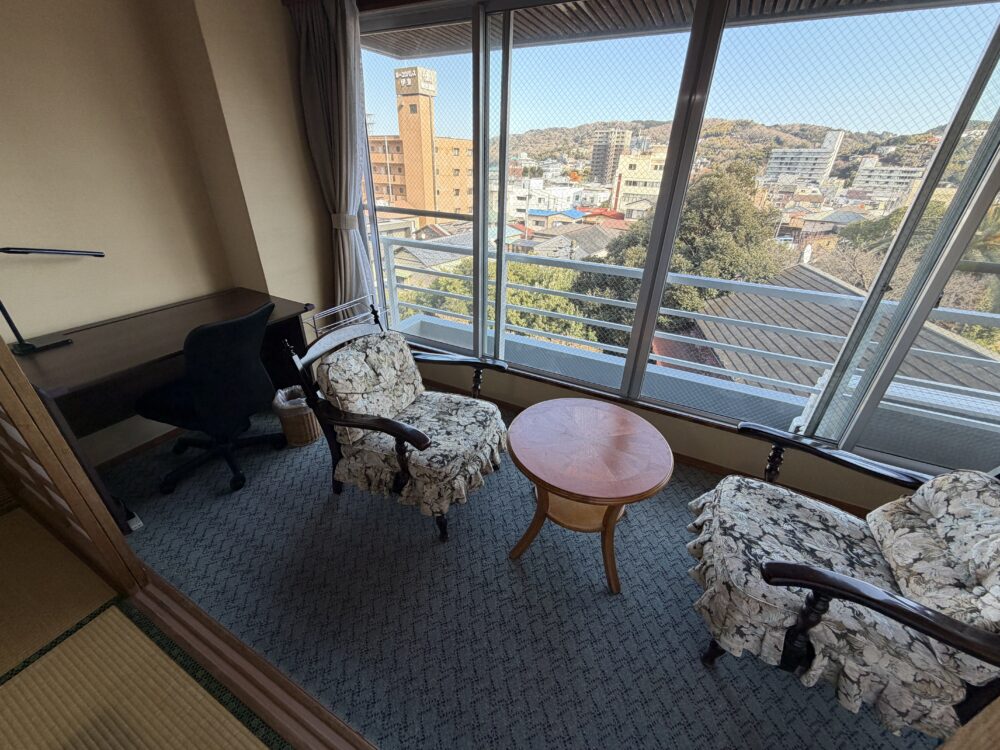 伊東温泉「大東館」さんのお部屋へ「眺め良い。もはや自分の家だ…笑」