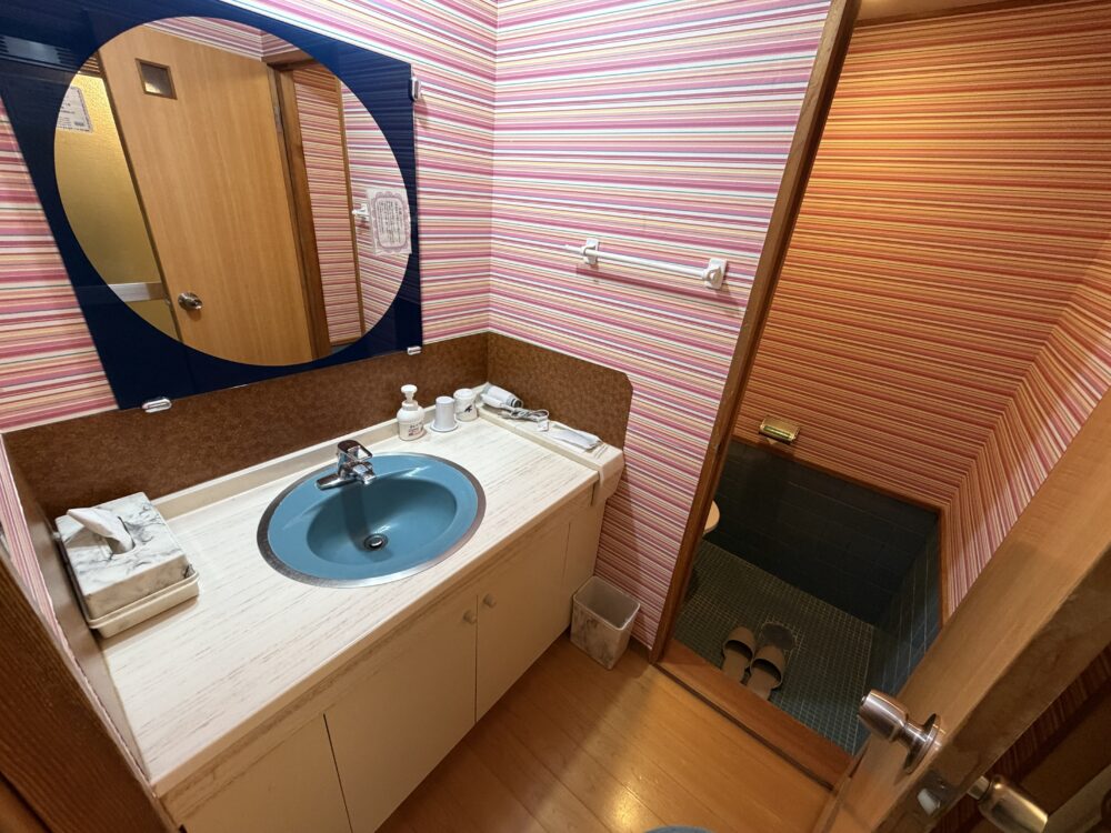 部屋にお手洗い、洗面所、お風呂が完備。(部屋風呂も実はかけ流しになるほどの極上湯だけど、ボクは入ったことない…笑)