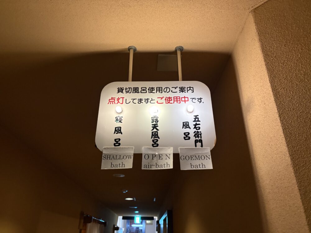 - ちょっと酔いが覚めたら温泉へ(貸切はけっこう空いてるはず)