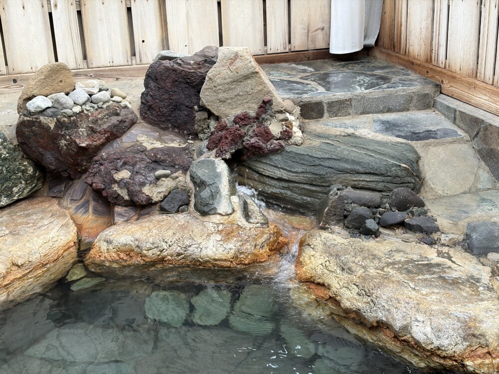 露天風呂の方も温泉が出ていて、なかなかの湧出量。