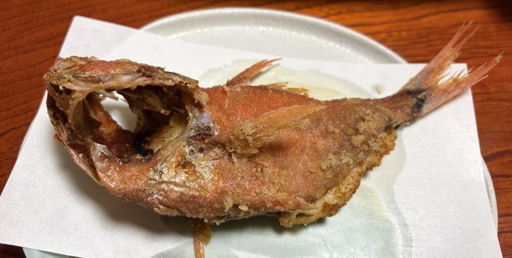 キンメの唐揚げ。中にポテトサラダが入った珍しいスタイル。