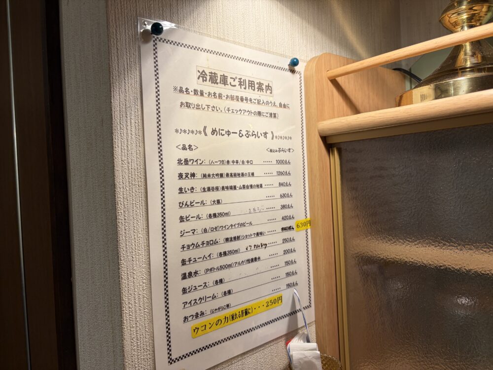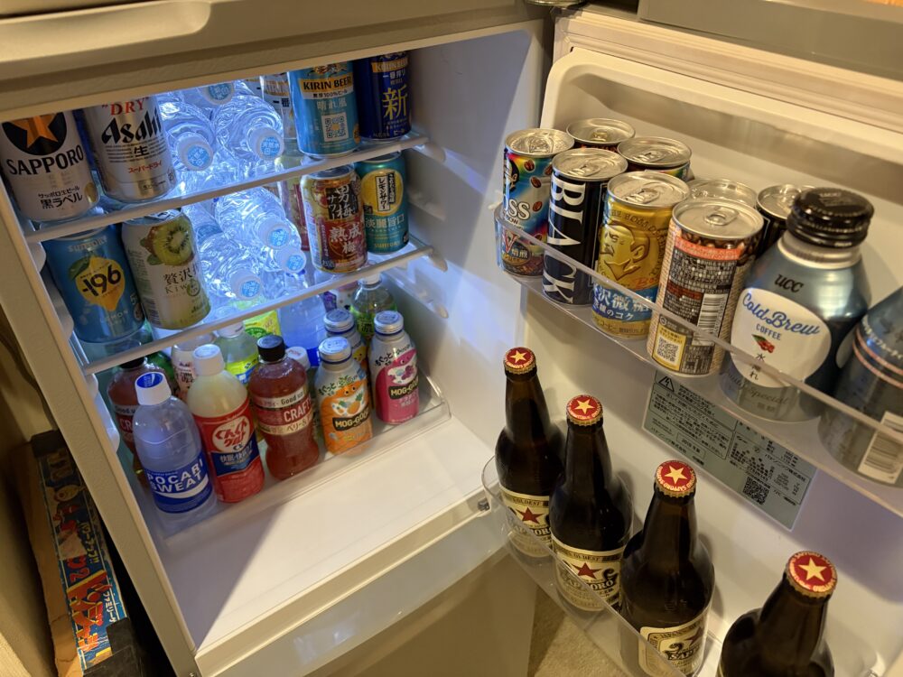 部屋の前のスペースで飲めるように。このスペースの冷蔵庫に、