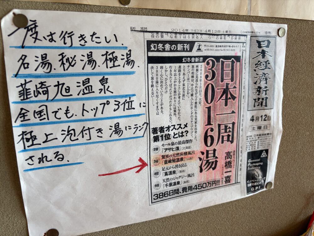 ちなみにこの「3016湯」という温泉の名著があって、ボクがブログで「値段の10倍の価値がある」と書いてからまもなく、本当に値段が10倍まで高騰してしまった…という本でもあるのです。