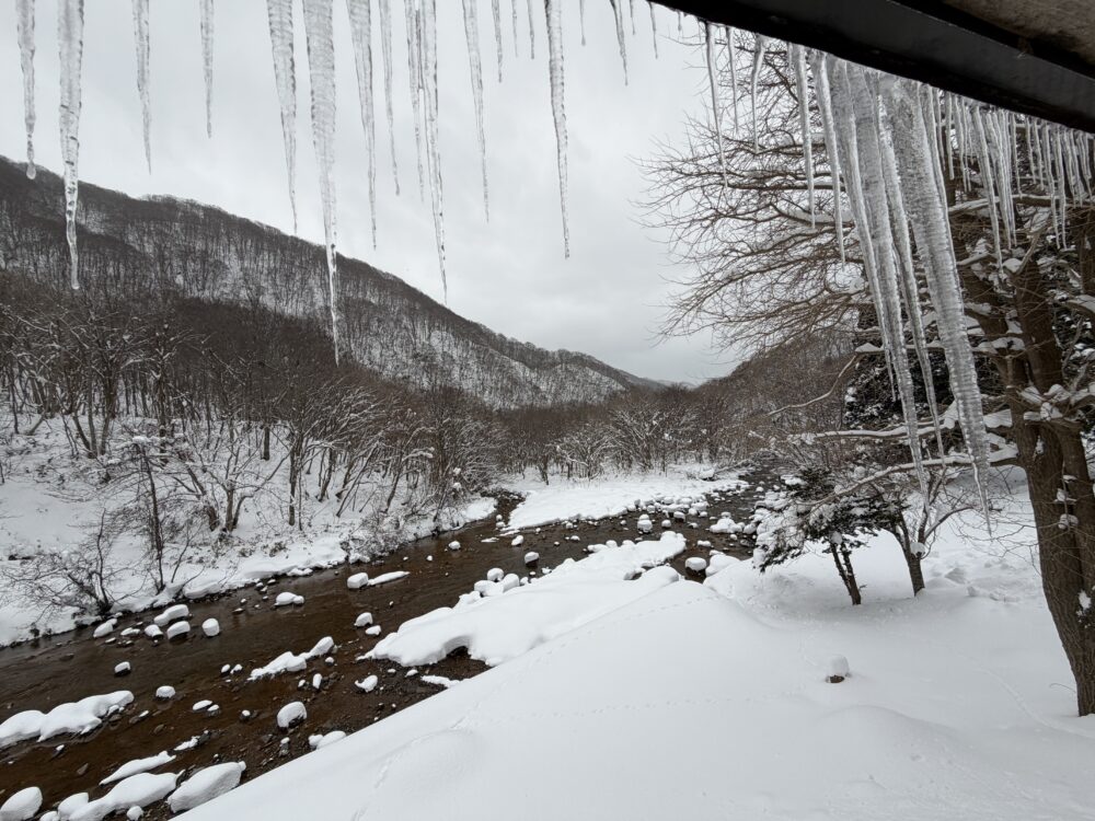 素晴らしい絶景…。そして氷柱がすごい。これだけで寒さが伝わるかと。笑