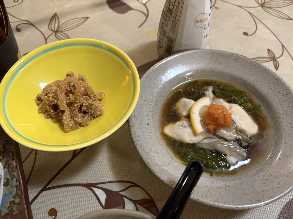 あとから持ってきていただいたカキポン酢と何か。(忘れた。笑)