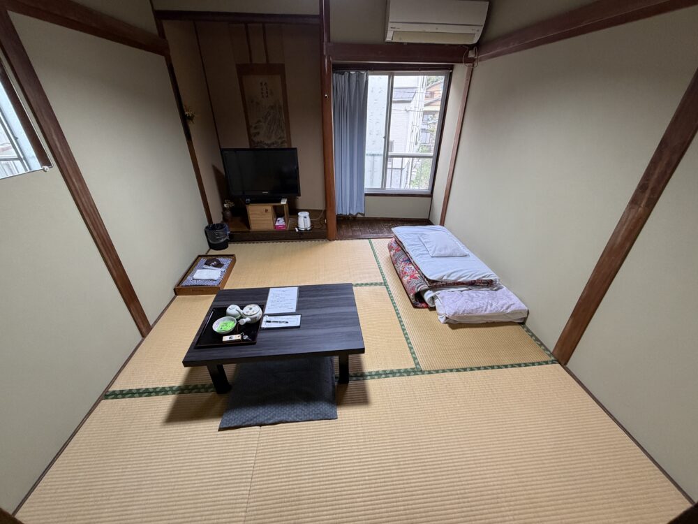 亀川温泉「まるみや旅館」さんのお部屋へ「4畳半。しかし快適」