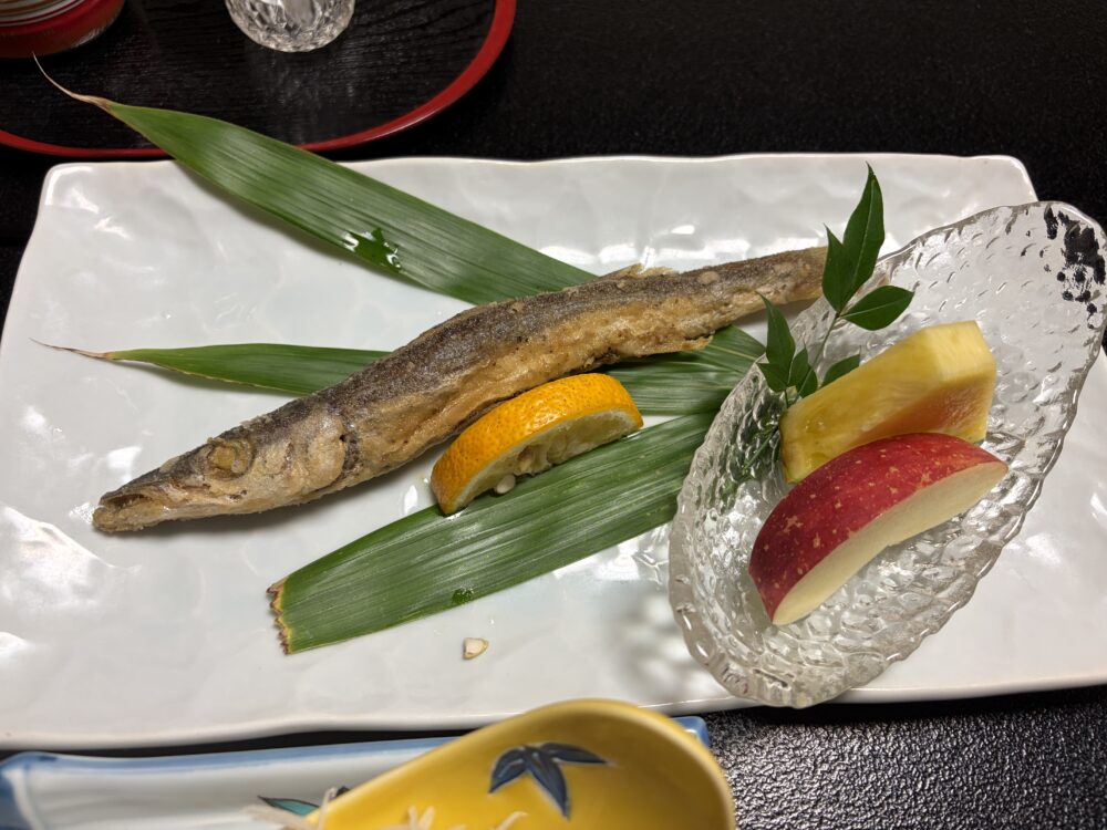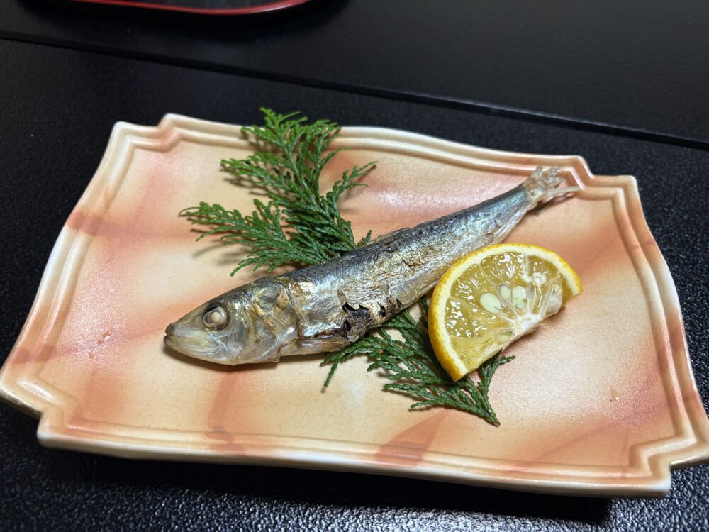 カマスの唐揚げは、後から揚げたてを持ってきていただきました。