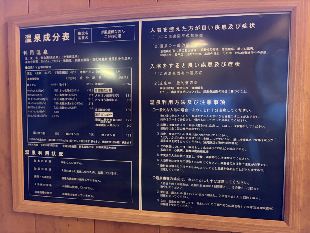 • 泉質:カルシウム・ナトリウム-硫酸塩・炭酸水素塩・塩化物泉