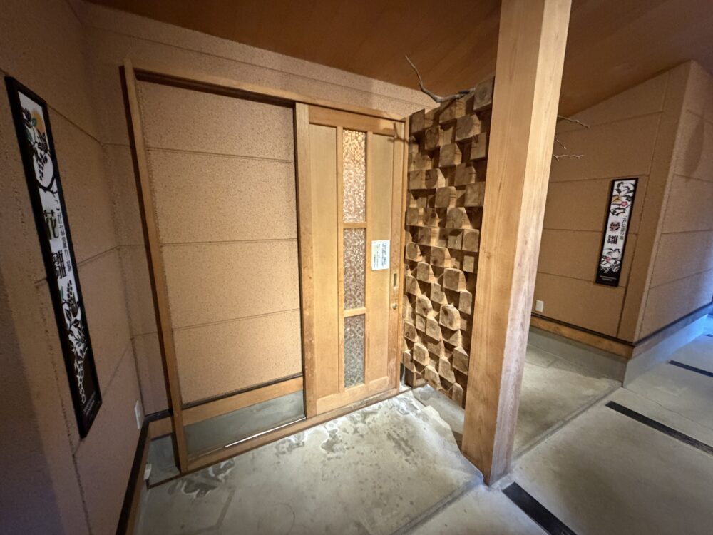 貸切温泉の入り口。黄金の湯が源泉の方の入り口が2つ。