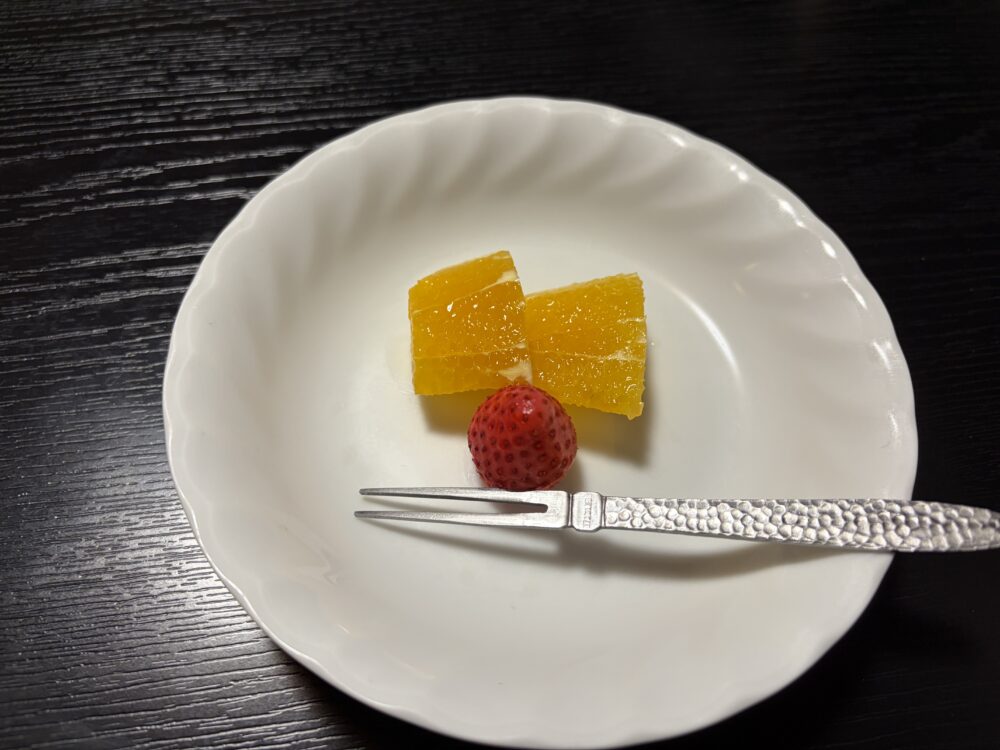 最後にデザートを用意していただき、さっと布団も敷いていただき、ありがたいかぎり。