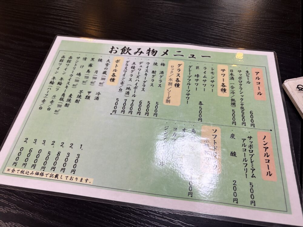 北海道に来たらサッポロクラシックかなと。中瓶660円なので、かなりお安いと思います。