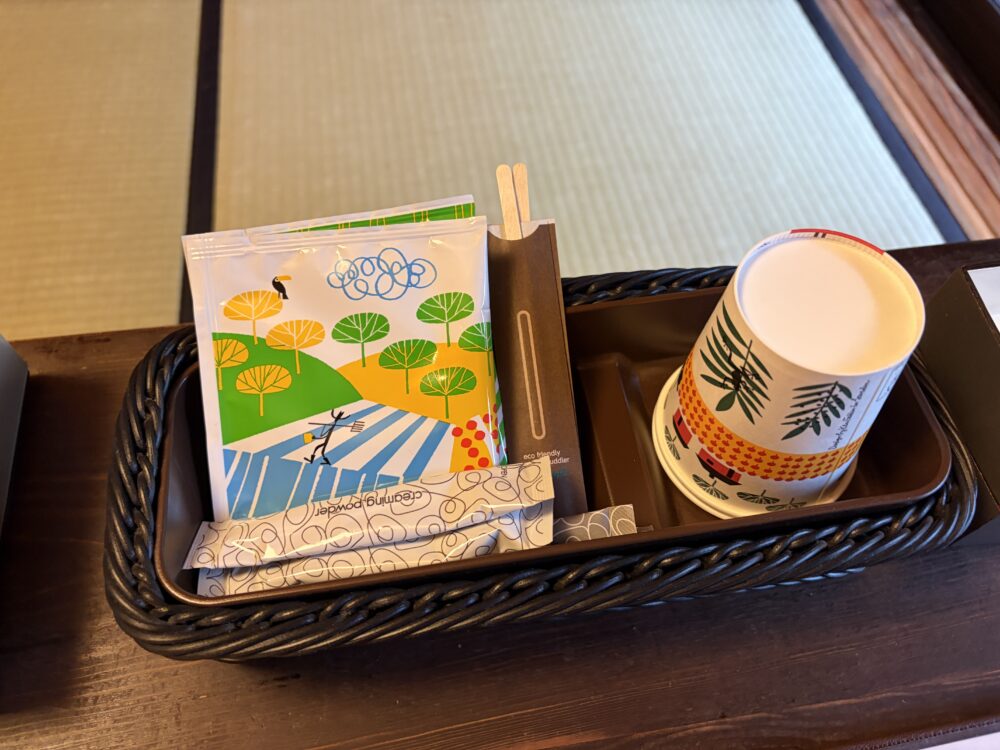 コップ1つとっても芸術的なので、美術館に泊まっているような気分、といった感じかな。