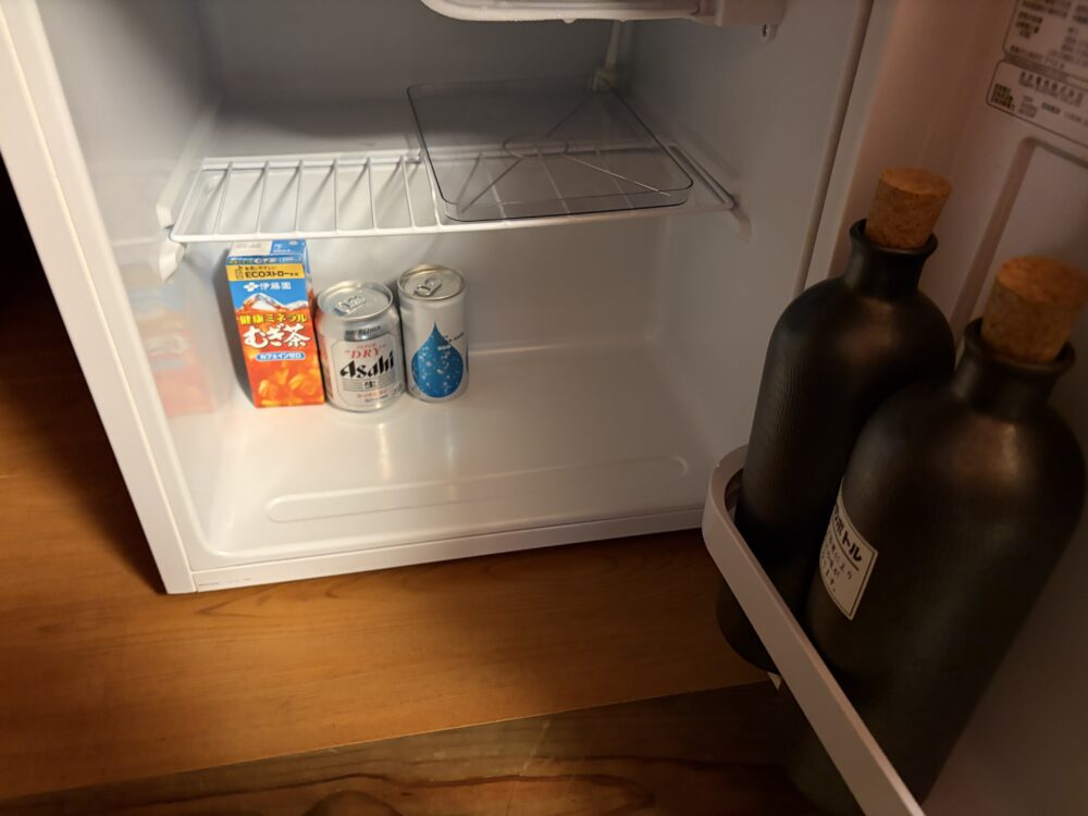 ボトルに入ったお水と、小さいビール、炭酸水、麦茶。(無料)