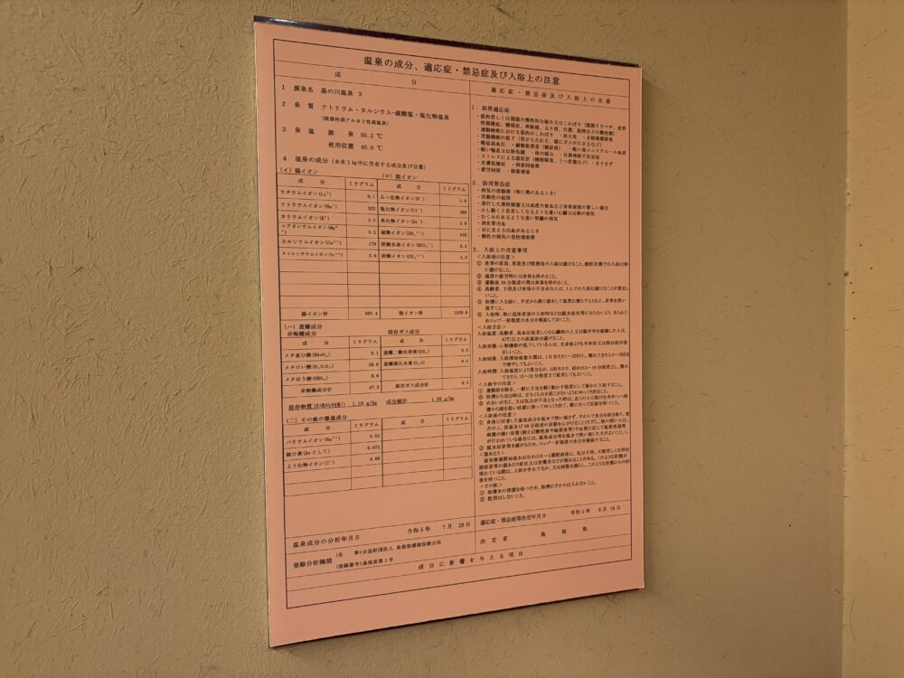 - 泉質:ナトリウム・カルシウム-塩化物・炭酸水素塩泉