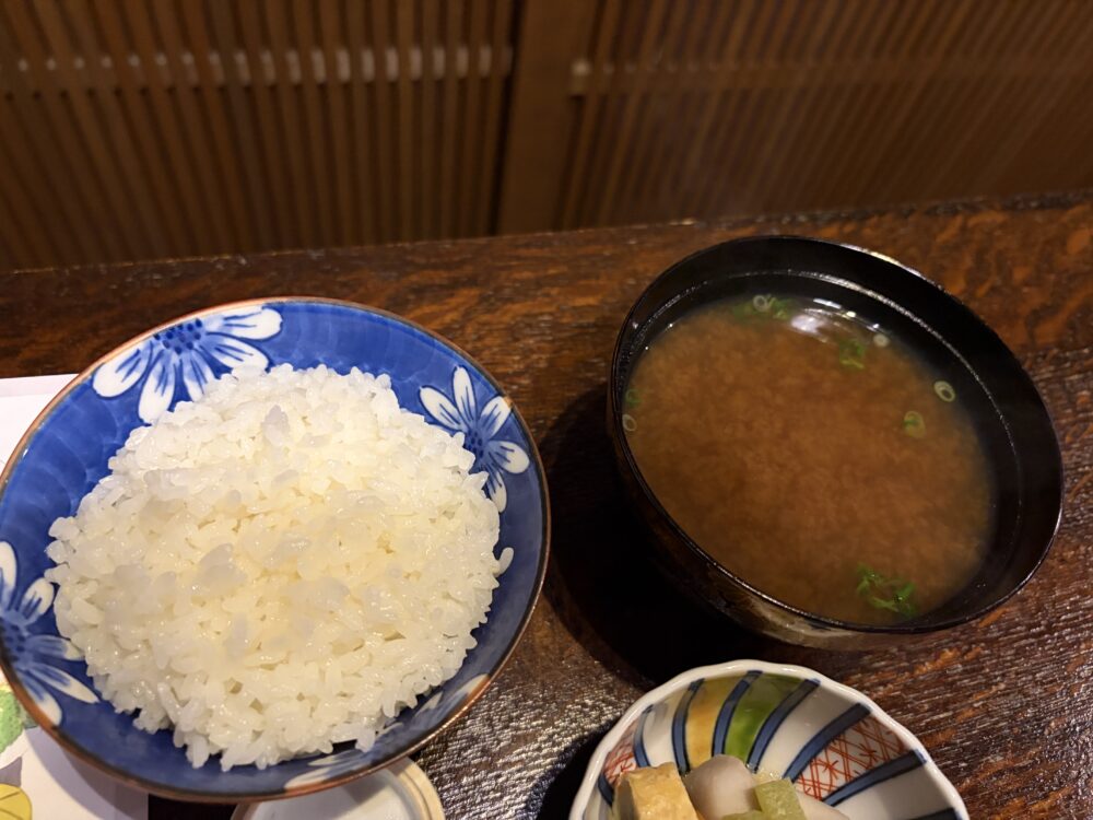 そしてご飯とお味噌汁を。ご飯はかなり軽めにしていただいています。(ちょうどよくボリュームもあり)